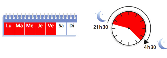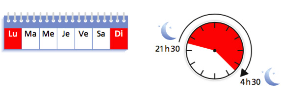 Du lundi soir au vendredi matin de 21h30 à 4h30