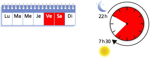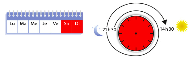 Du samedi soir au dimanche après-midi de 21h30 à 14h30