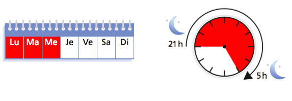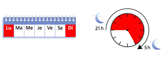 Du lundi soir au mercredi matin de 21h00 à 5h00