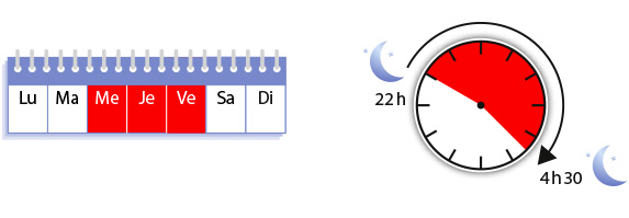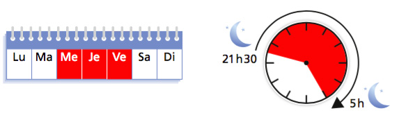 Du mercredi soir au vendredi matin de 22h00 à 4h30