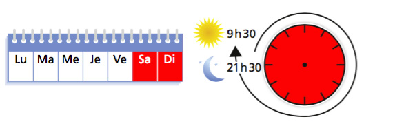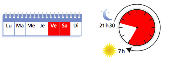Du samedi soir au dimanche après-midi de 21h30 à 9h30