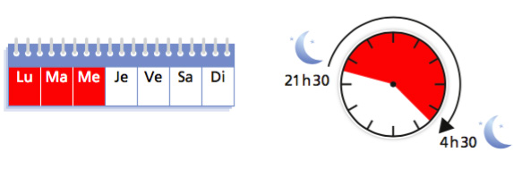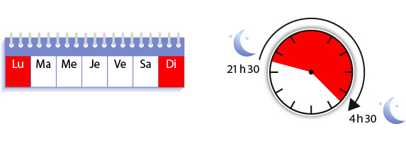 Du lundi soir au mercredi matin de 21h30 à 4h30